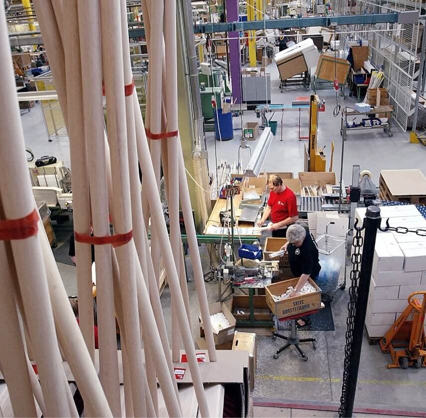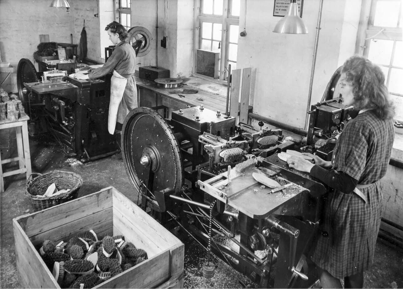 The breakout of World War II made importing raw materials difficult. In order to keep brush production going, the company had to use materials that were accessible in Denmark. For example, brooms were made with crowberries and heather during wartime.