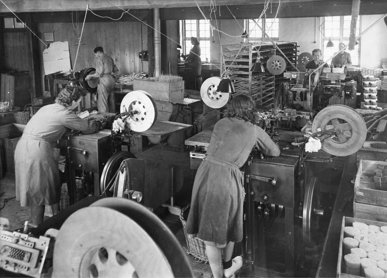 In the beginning, several boys were employed to make the brushes. Until 1910, children above 10 years old were allowed to work in factories. The working hours were of a maximum of 4 hours a day, and those hours were tightly controlled. Some of the boys later became apprentices at the company and stayed there for the rest of their working life.
