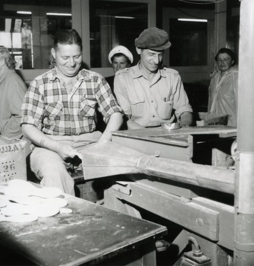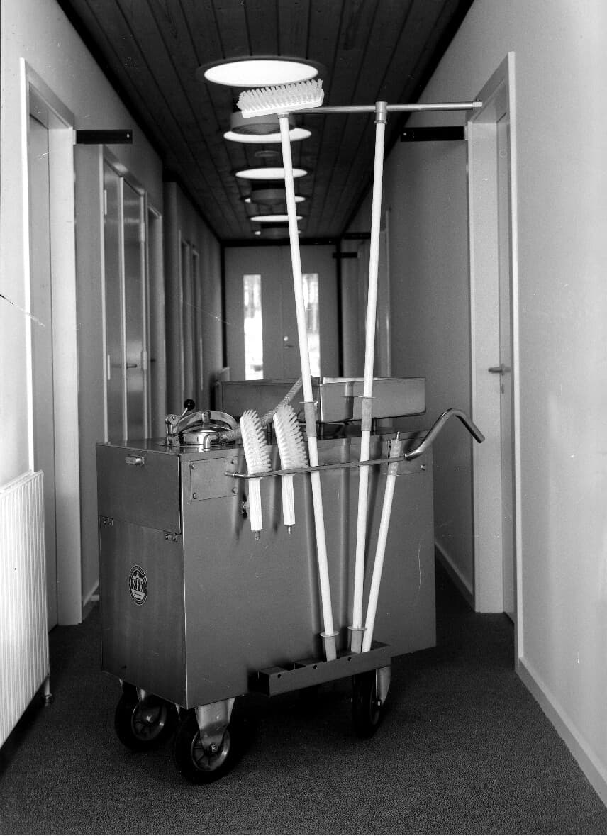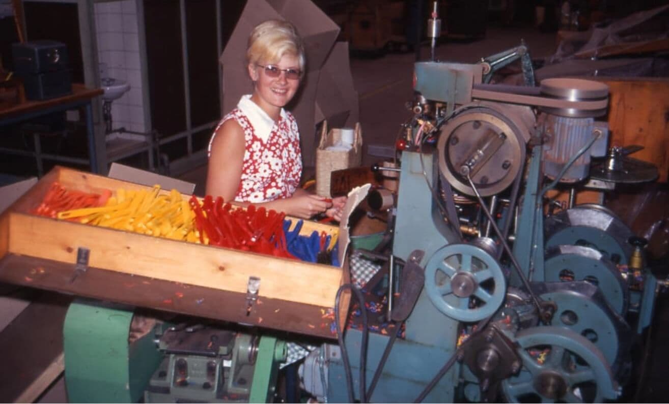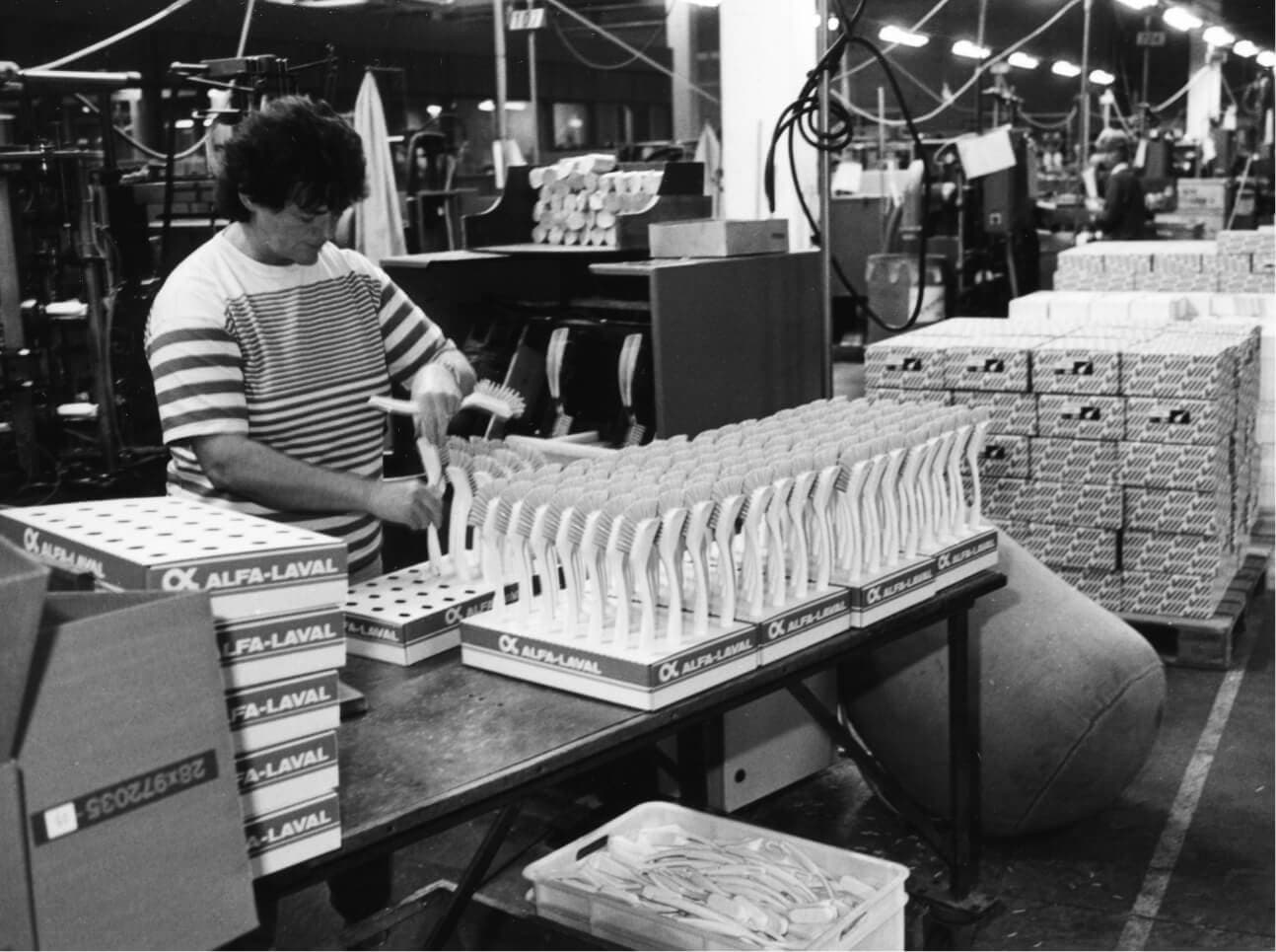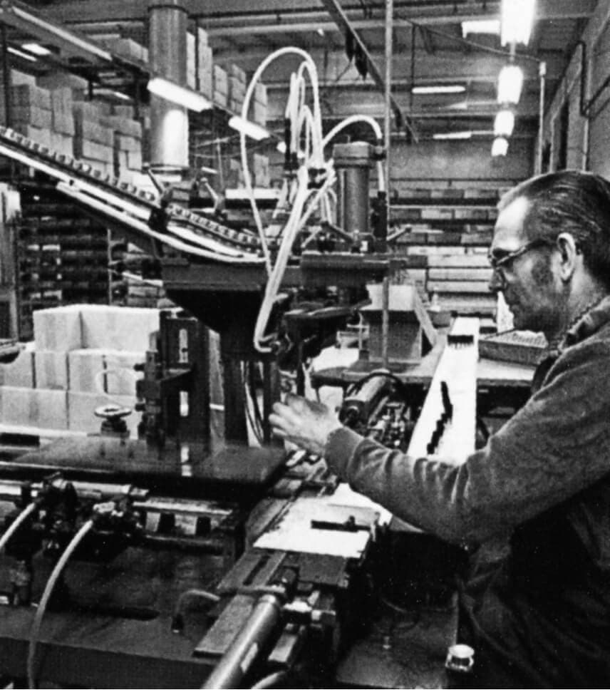 A sign reading “Vikan” was placed on the gable of the new factory. The name “Skive Børstefabrik” was no longer suitable for an export company, and “Vikan” was slowly put on all products. During the 1960s, production became more and more mechanized. The work formerly done by hand was now done with new machines.