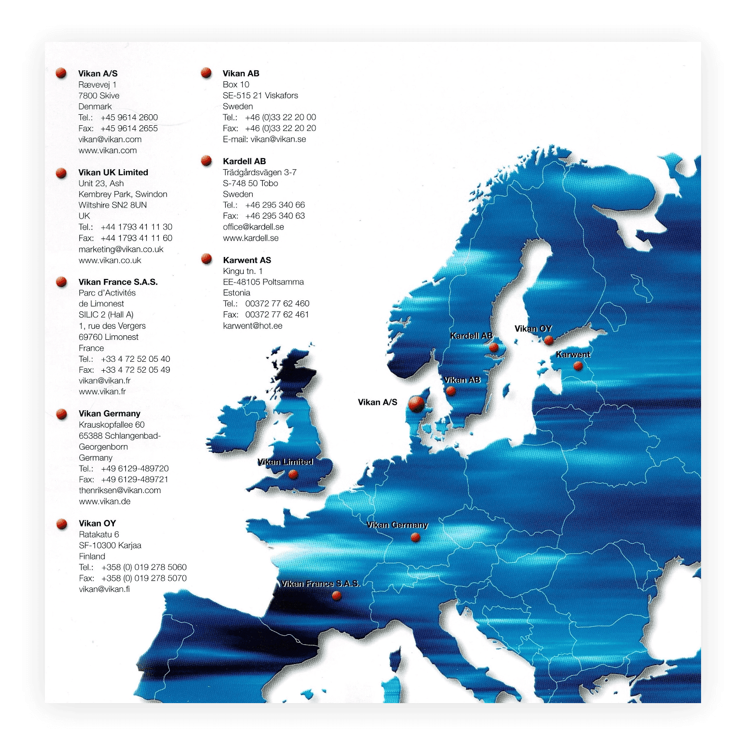 Starting in 1992, Vikan began establishing sales offices in several EU countries and opened production facilities in Estonia (2003) and Sweden (2004, moved to Denmark in 2008). After the turn of the millennium, Vikan bought several companies that could support its mission.